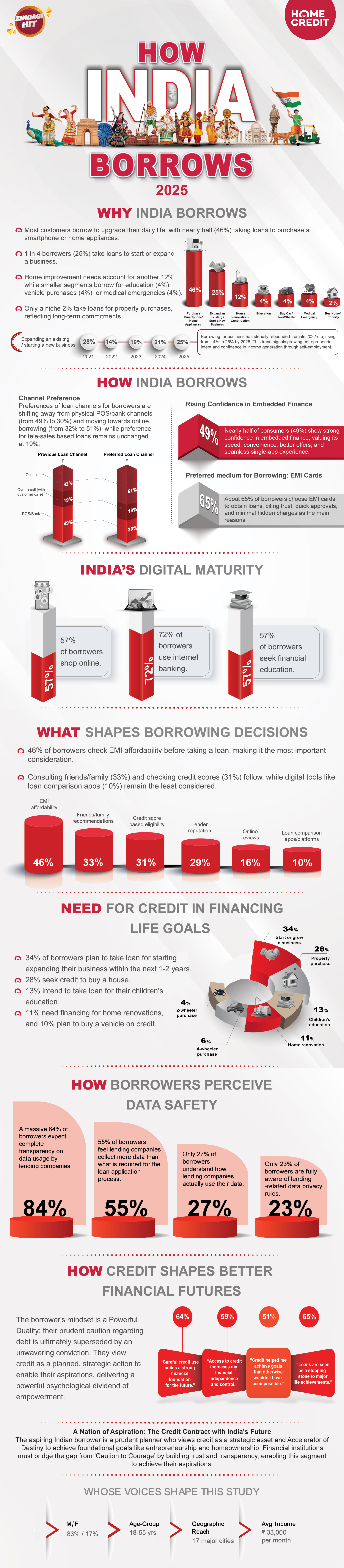 The 'How India Borrows 7.0' study confirms a powerful shift: India’s credit culture is moving from borrowing for survival to borrowing for success. The lower middle class is now highly strategic, using credit as a vital bridge to entrepreneurship, homeownership, and education. Gen Z, Millennials, women, and smaller cities are driving this digital lending revolution, prioritizing speed, simplicity, and personalization. We see them as Prudent Planners and Confident Builders. At Home Credit India, we are committed to providing a transparent financial journey that fuels personal progress and national growth, making every borrower’s #ZindagiHit.